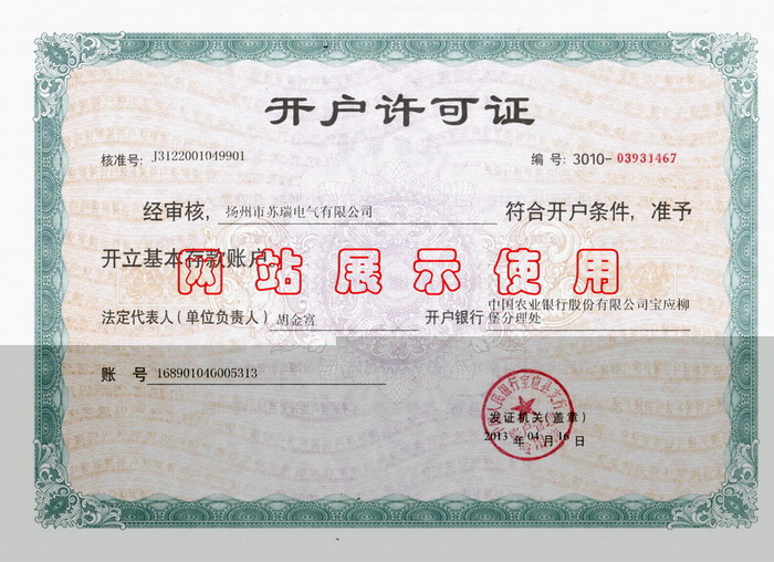 蘇瑞電氣開戶許可證