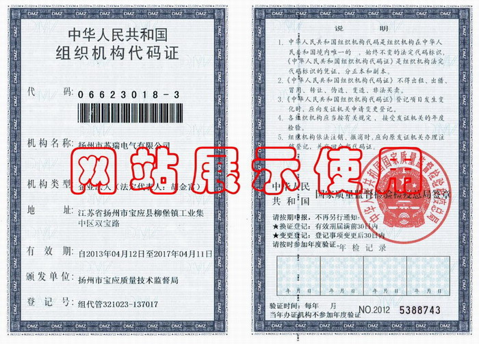 蘇瑞電氣組織代碼證